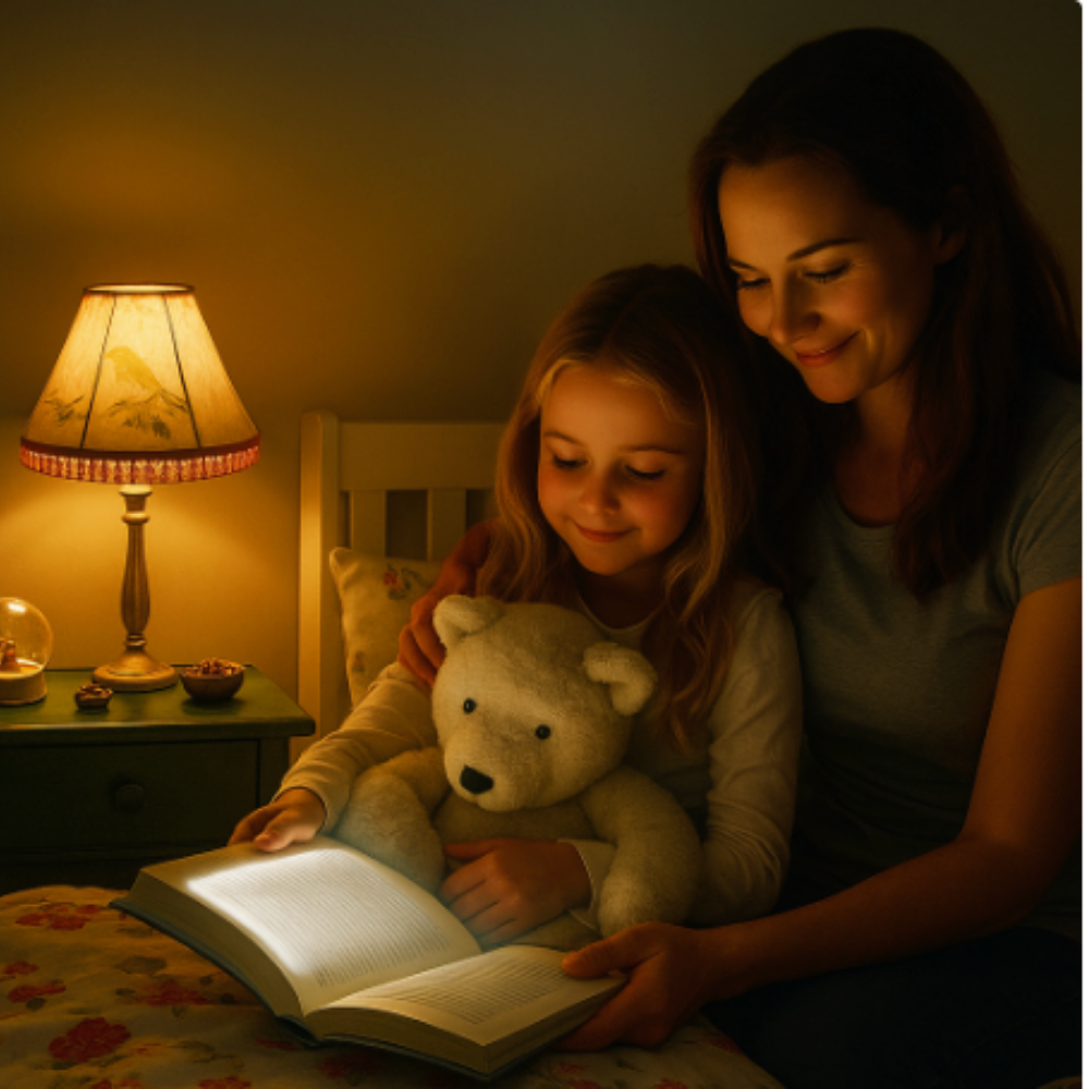 Liebevoll vorgelesen, gemütlich beleuchtet: Licht, das Geschichten lebendig macht und Geborgenheit schenkt.